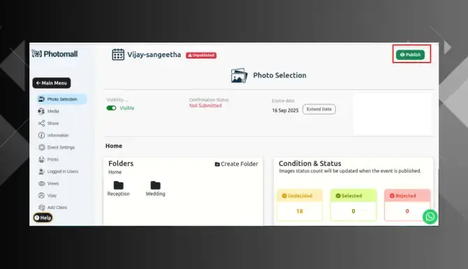 Step 22: And then click "Publish" so your customers can select the photos.