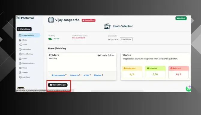 Step 1: Go to the Event page and click on the specific event and click Photo Selection option.